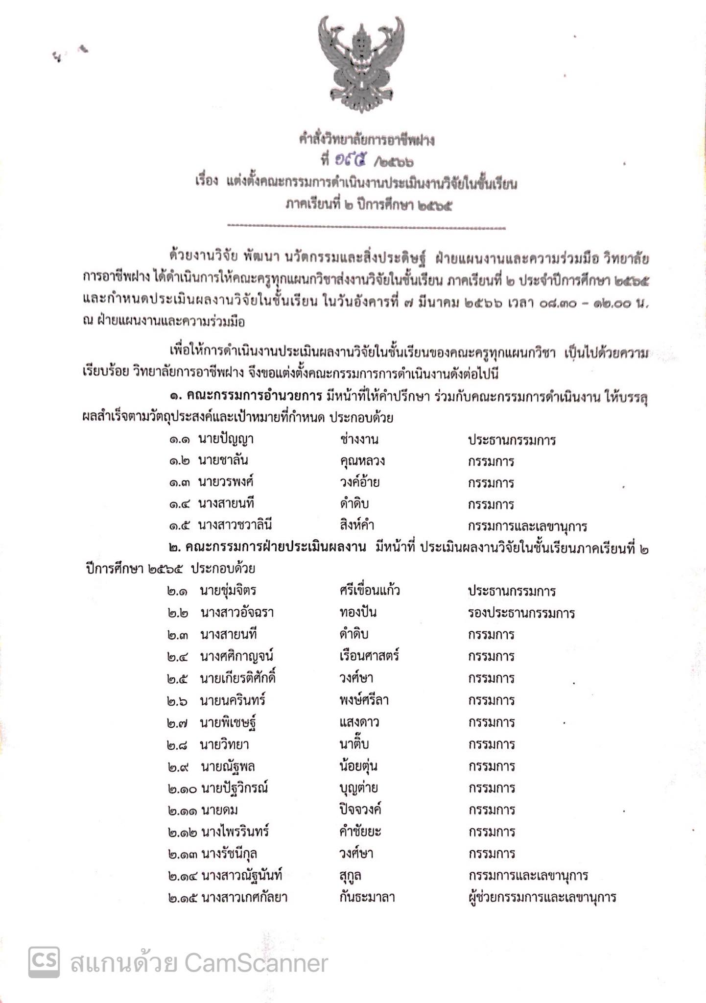 คำสั่ง แต่งตั้งคณะกรรมการดำเนินงานประเมินงานวิจัยในชั้นเรียน ภาคเรียนที่ 2 ปีการศึกษา 2565 2 มีนาคม 20232 มีนาคม 2023จุฑามาศ ณิชฐากรข่าวสารสำหรับครูและบุคลากร