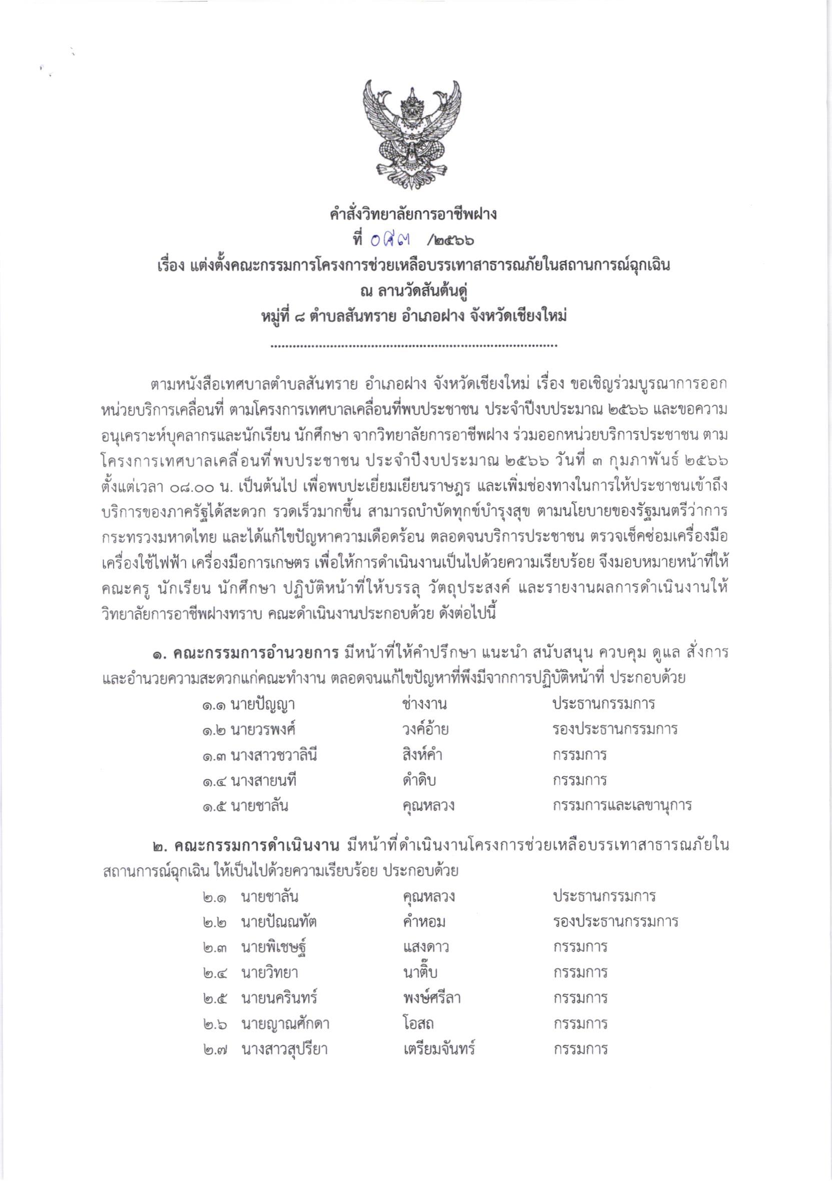 ***ฉบับแก้ไข*** คำสั่ง แต่งตั้งคณะกรรมการโครงการช่วยเหลือบรรเทาสาธารณภัยในสถานการณ์ฉุกเฉิน ณ ลานวัดสันต้นดู่ ตำบลสันทราย อำเภอฝาง จังหวัดเชียงใหม่ 31 มกราคม 202331 มกราคม 2023จุฑามาศ ณิชฐากรข่าวสารสำหรับครูและบุคลากร
