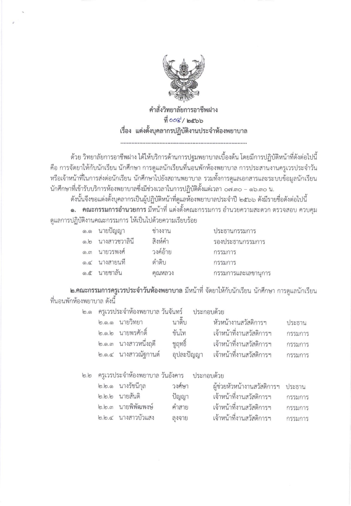 คำสั่ง แต่งตั้งครูพยาบาลประจำแผนก 4 มกราคม 20234 มกราคม 2023จุฑามาศ ณิชฐากรข่าวสารสำหรับครูและบุคลากร