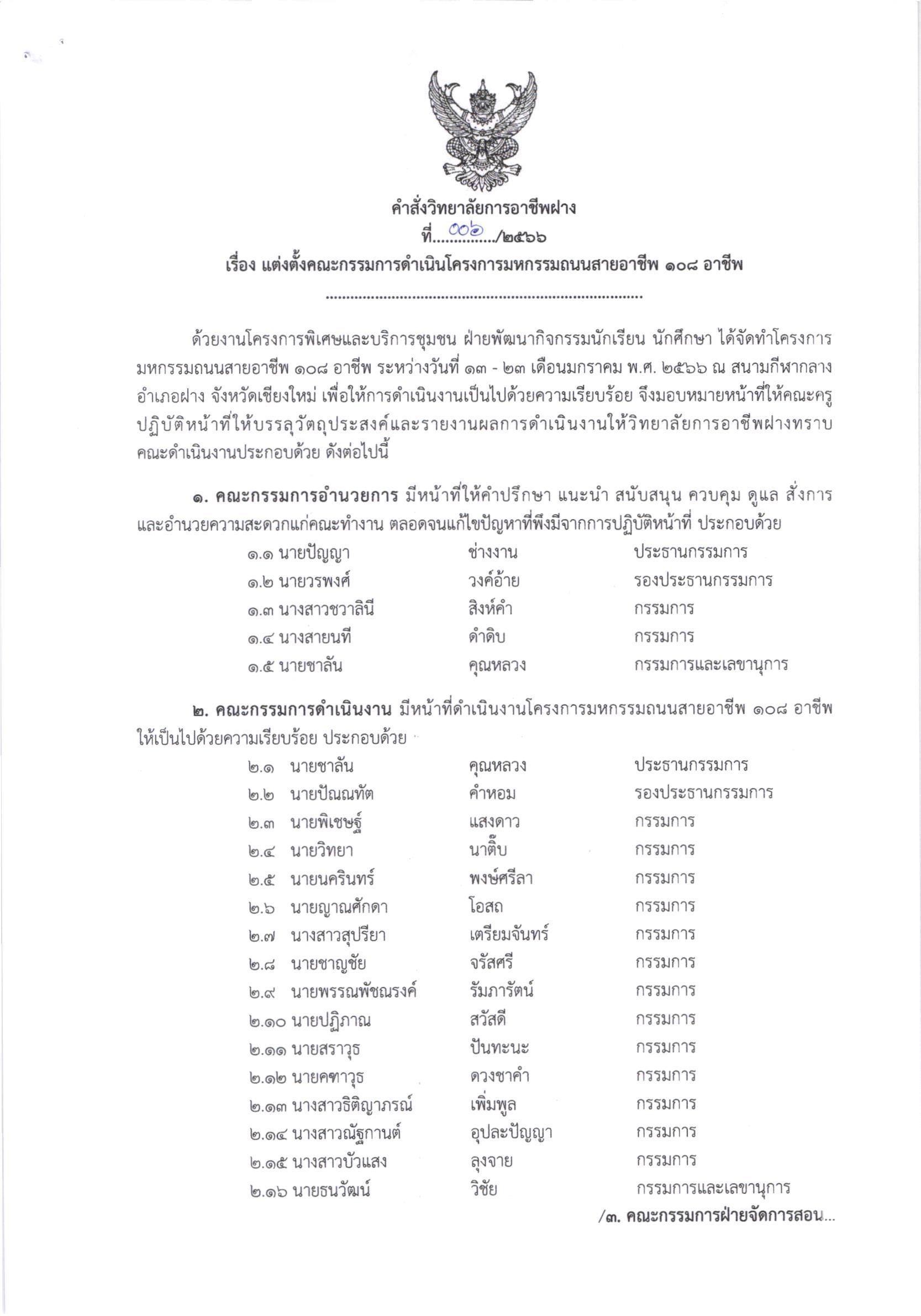 คำสั่ง แต่งตั้งคณะกรรมการดำเนินโครงการมหกรรมถนนสายอาชีพ 108 อาชีพ 5 มกราคม 20235 มกราคม 2023จุฑามาศ ณิชฐากรข่าวสารสำหรับครูและบุคลากร