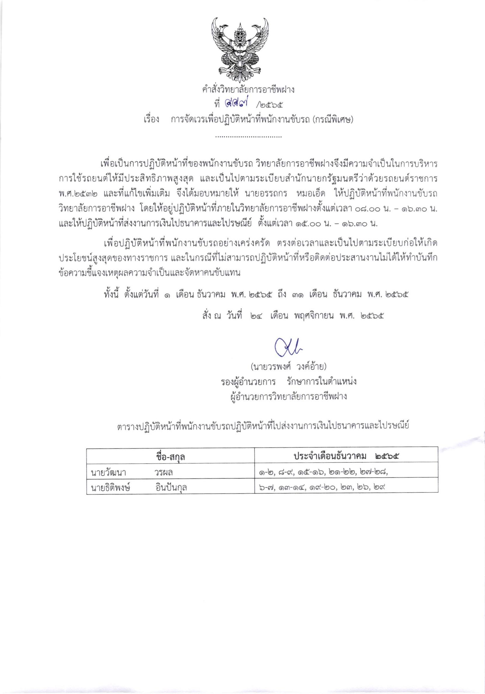 คำสั่ง การจัดเวรเพื่อปฏิบัติหน้าที่พนักงานขับรถ ประจำเดือน ธันวาคม 2565 (กรณีพิเศษ) 24 พฤศจิกายน 202224 พฤศจิกายน 2022จุฑามาศ ณิชฐากรข่าวสารสำหรับครูและบุคลากร