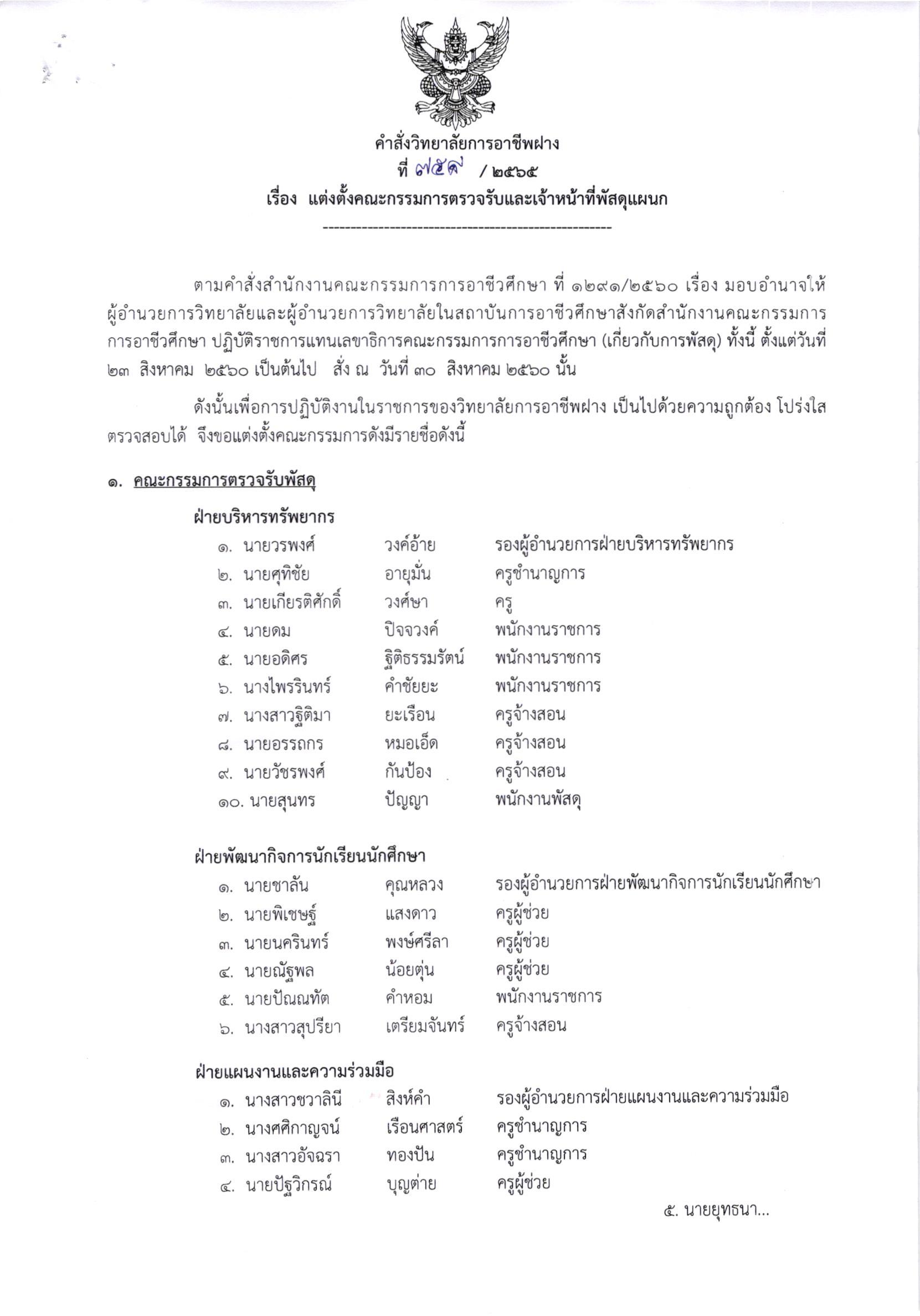 คำสั่ง แต่งตั้งคณะกรรมการตรวจรับและเจ้าหน้าที่พัสดุแผนก 18 พฤศจิกายน 202218 พฤศจิกายน 2022จุฑามาศ ณิชฐากรข่าวสารสำหรับครูและบุคลากร