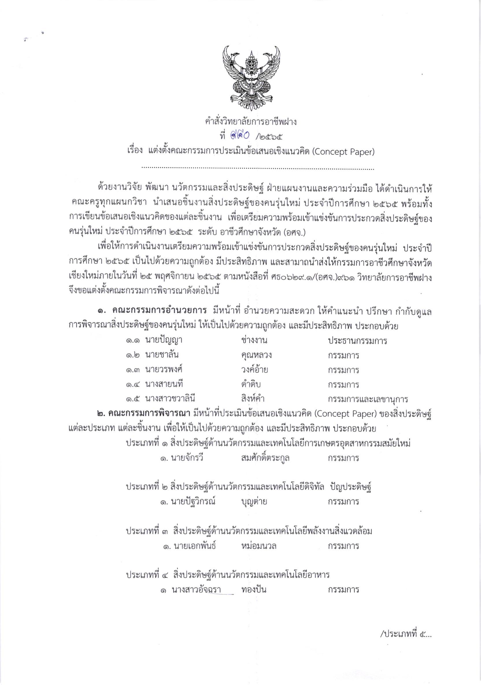 คำสั่ง แต่งตั้งคณะกรรมการประเมินข้อเสนอเชิงแนวคิด (Concept Paper) 22 พฤศจิกายน 202222 พฤศจิกายน 2022จุฑามาศ ณิชฐากรข่าวสารสำหรับครูและบุคลากร