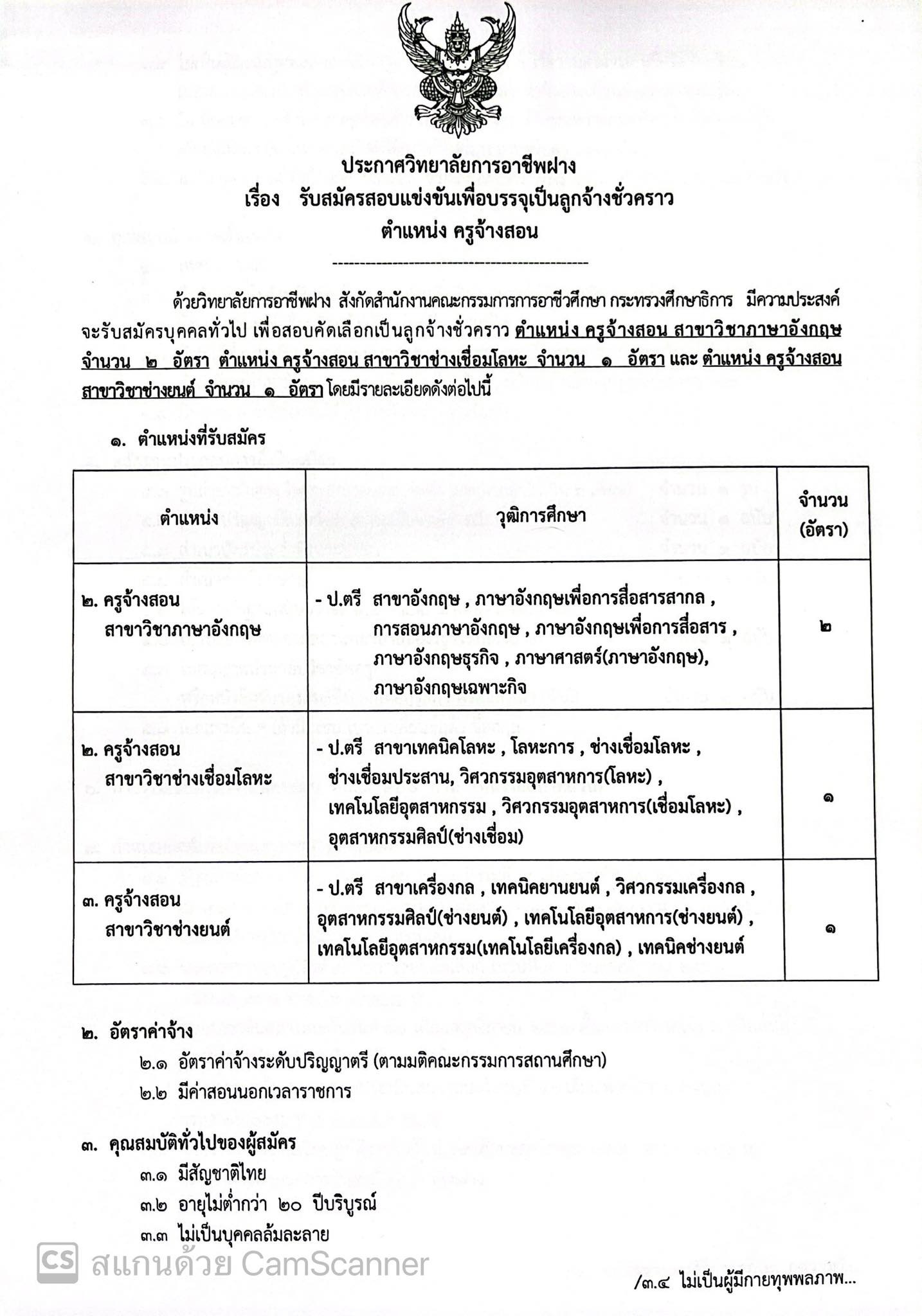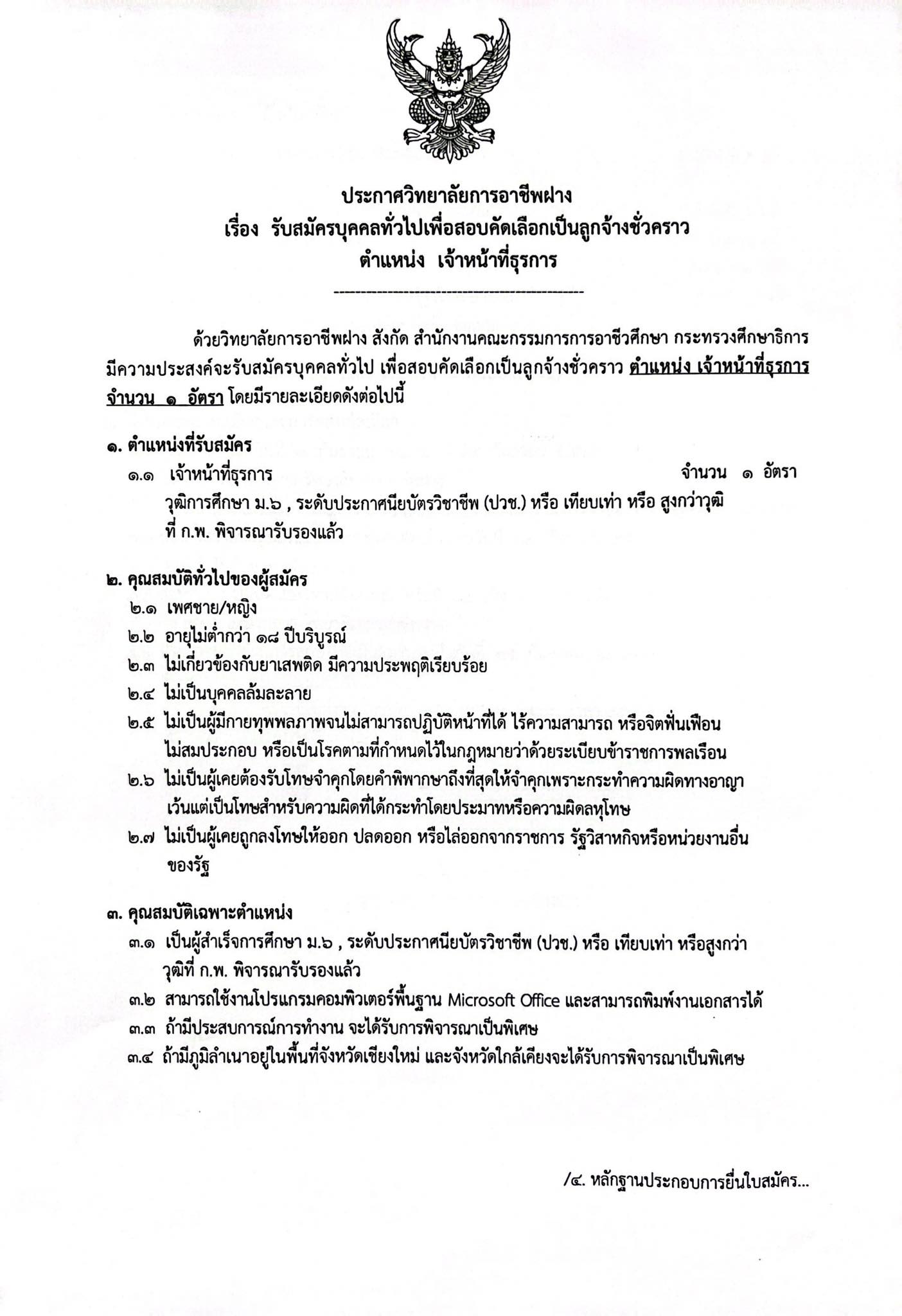 ประกาศ วิทยาลัยการอาชีพฝาง เรื่อง รับสมัครบุคคลทั่วไปเพื่อสอบคัดเลือกเป็นลูกจ้างชั่วคราว ตำแหน่งพนักงานขับรถ 19 มิถุนายน 202519 มิถุนายน 2025จุฑามาศ ณิชฐากรข่าวประชาสัมพันธ์