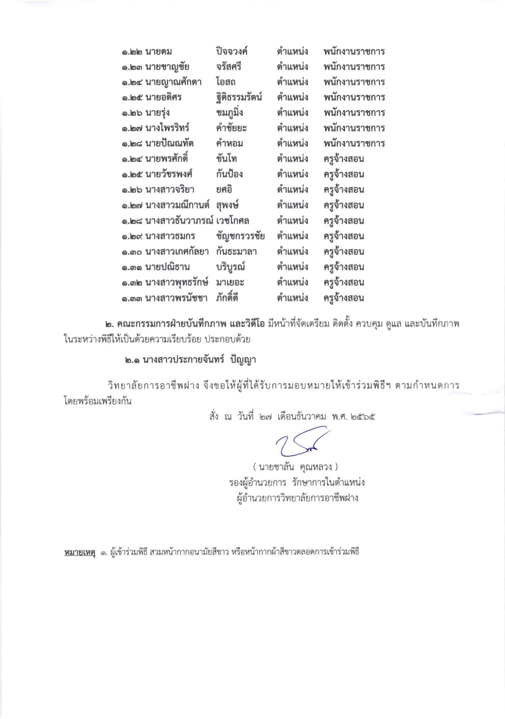 คำสั่ง ผู้เข้าร่วมพิธีเจริญพระพุทธมนต์และเจริญจิตตภาวนา เพื่อถวายพระพรแด่สมเด็จพระเจ้าลูกเธอเจ้าฟ้าพัชรกิติยาภา นเรนทิราเทพยวดี กรมหลวงราชสาริณีสิริพัชร มหาวัชรราชธิดา วันที่ อังคาร ที่ 27 ธันวาคม 2565 ณ วัดพระบาทอุดม อ.ฝาง ตั้งแต่เวลา 16.00น.เป็นต้นไป 27 ธันวาคม 202227 ธันวาคม 2022จุฑามาศ ณิชฐากรข่าวสารสำหรับครูและบุคลากร คำสั่ง-981.65ดาวน์โหลด Facebook iconFacebookTwitter iconTwitterLINE iconLine