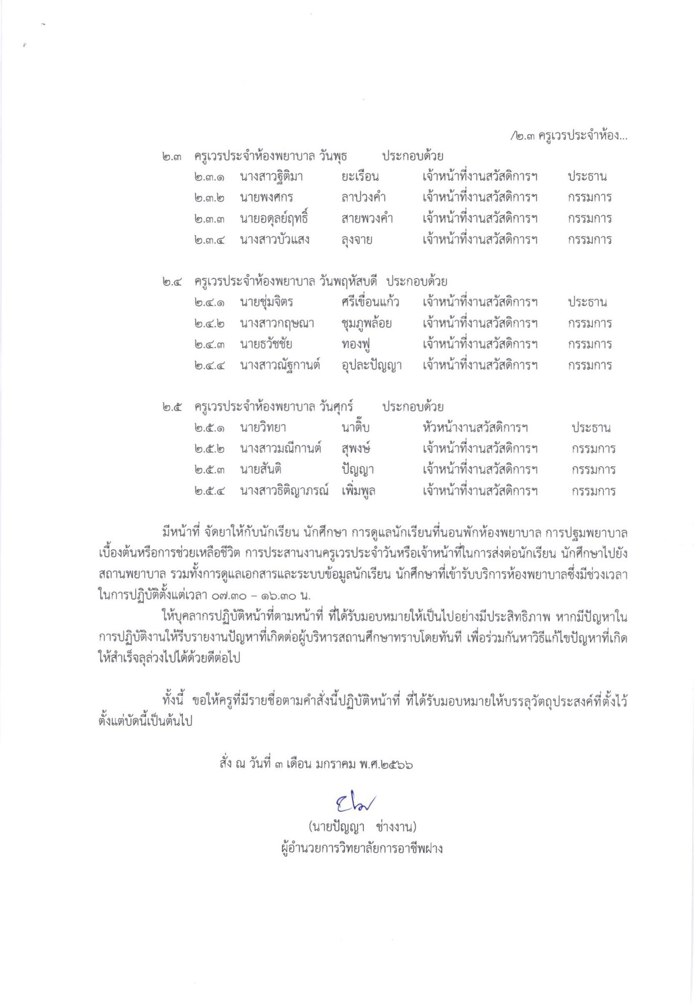 คำสั่ง แต่งตั้งบุคลากรปฏิบัติงานประจำห้องพยาบาล 4 มกราคม 20234 มกราคม 2023จุฑามาศ ณิชฐากรข่าวสารสำหรับครูและบุคลากร คำสั่ง-004.66001ดาวน์โหลด Facebook iconFacebookTwitter iconTwitterLINE iconLine