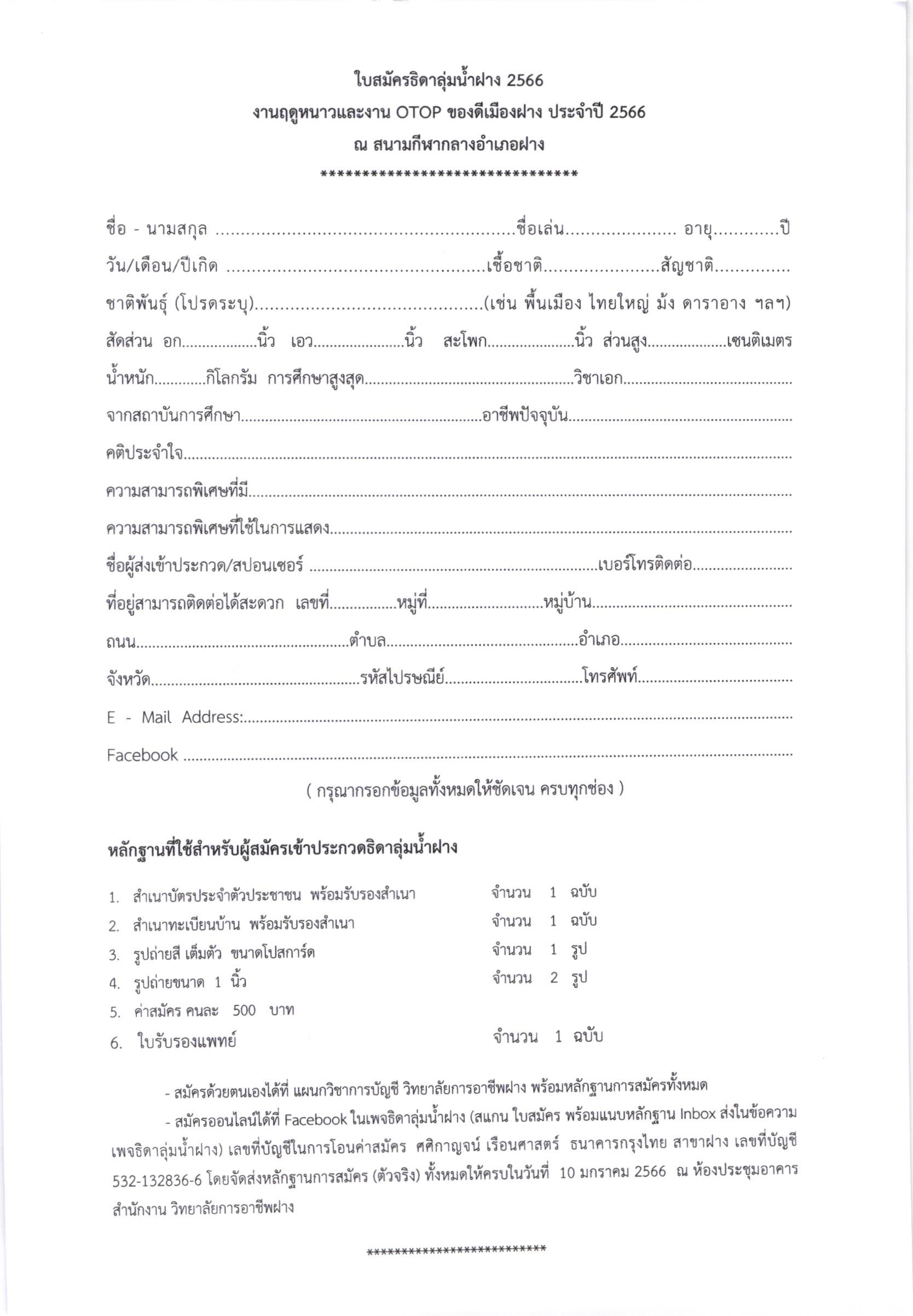ประชาสัมพันธ์ เกณฑ์การประกวดธิดาลุ่มน้ำฝาง / ใบสมัคร งานฤดูหนาวและงาน OTOP ของดีเมืองฝาง ประจำปี 2566 5 มกราคม 20235 มกราคม 2023จุฑามาศ ณิชฐากรข่าวประชาสัมพันธ์ ระเบียบหลักเกณฑ์การประกวดธิดาลุ่มน้ำฝาง-2566-ฉบับแก้ไข-1ดาวน์โหลด Facebook iconFacebookTwitter iconTwitterLINE iconLine