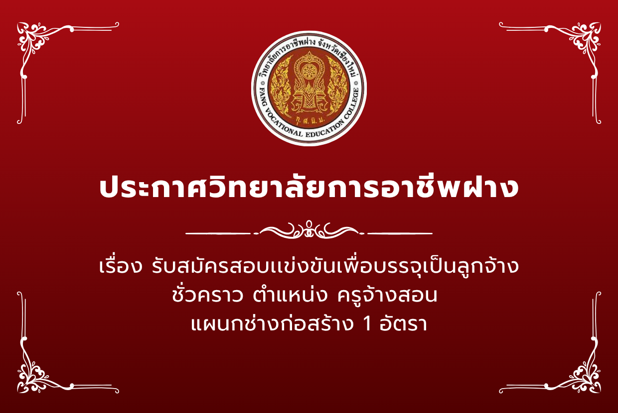 รับสมัครสอบเเข่งขันเพื่อบรรจุเป็นลูกจ้างชั่วคราว ตำแหน่ง ครูจ้างสอน แผนกช่างก่อสร้าง 1 อัตรา 9 เมษายน 20269 เมษายน 2026Abhisit Tidaข่าวประชาสัมพันธ์, ข่าวรับสมัครงาน, ข่าวสาร บันทึก-0377-2ดาวน์โหลด Facebook iconFacebookTwitter iconTwitterLINE iconLine